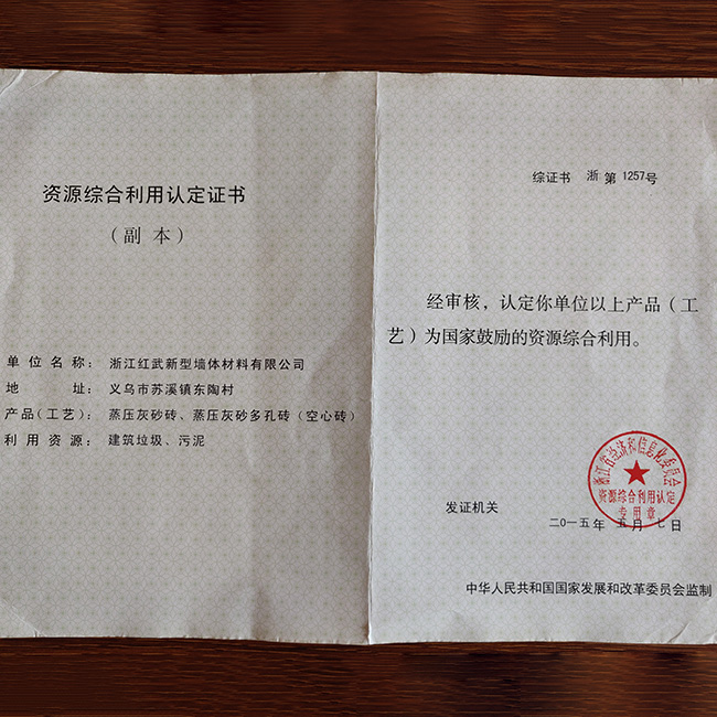 浙江紅武新型墻體材料有限公司成立于2013年,注冊資本1000萬元本公司有一般工業(yè)固體廢物回收利用服務。同年斥資3800萬元,購進德國技術裝備的液壓制磚設備,采用先進的生產(chǎn)工藝,生產(chǎn)各種規(guī)格型號蒸壓灰砂磚、蒸壓灰砂多孔磚、蒸壓灰砂空心砌塊等產(chǎn)品,年達1億塊蒸壓砂磚(折合標磚)。